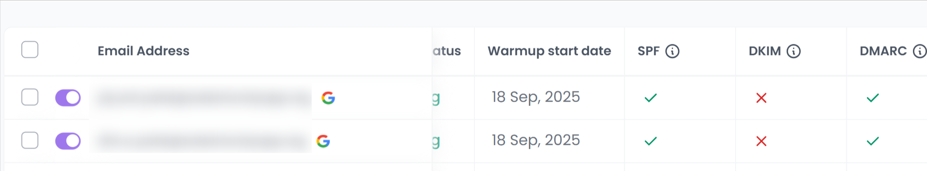 In TrulyInbox Email Account List, you can check if DKIM is set for your connected email account or not.