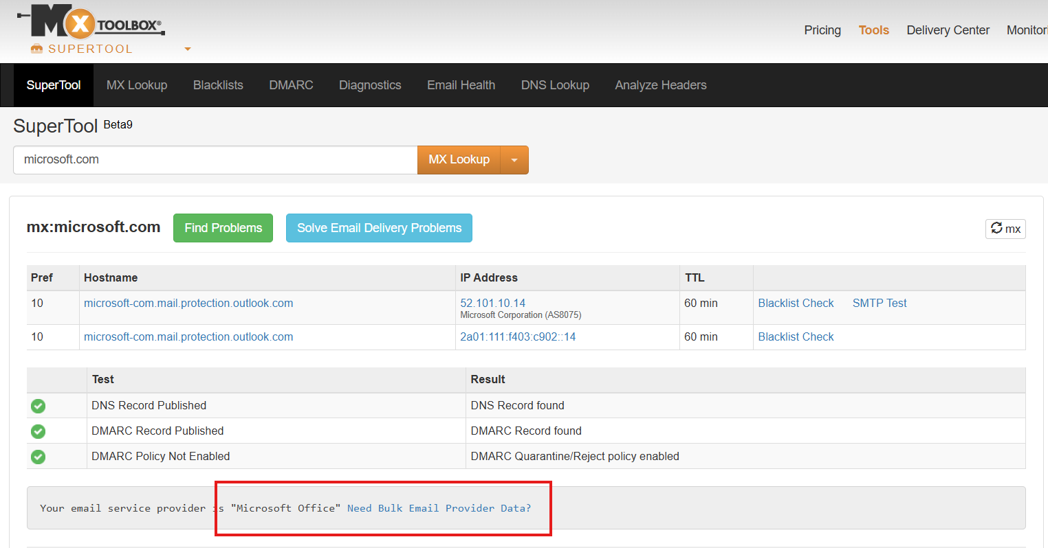 You’ll instantly see details about your domain, including the ESP handling your emails