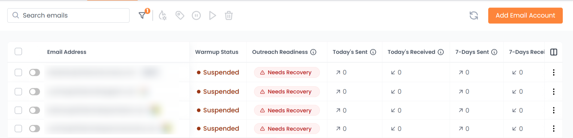 When we detect multiple bounces on your account, we trigger an immediate suspension. We do this to stop the bleeding. Continuing to send emails from an account that is bouncing heavily will ruin your reputation with providers like Google and Outlook, making it nearly impossible to reach the inbox later.
