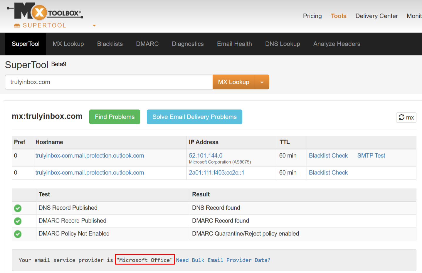 If the MX records show Microsoft Office, it means your emails are managed by Microsoft (Outlook, Microsoft 365).