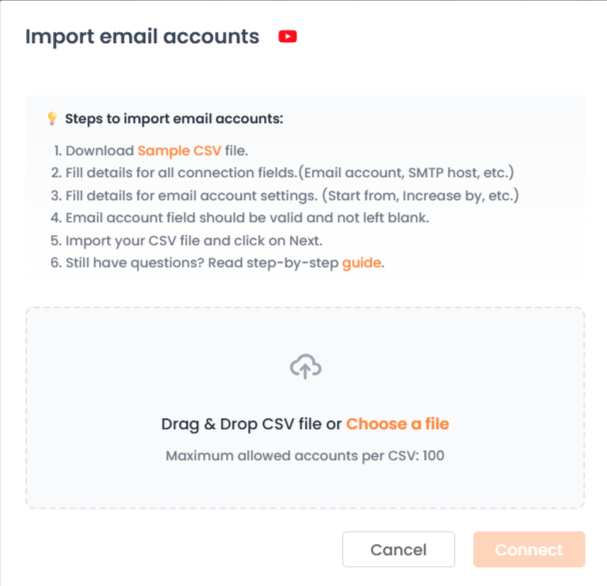 Bulk SMTP connection is a powerful time-saver for teams and agencies managing multiple email accounts. By following the correct CSV format and validation rules, you can connect dozens or hundreds of accounts quickly and reliably.