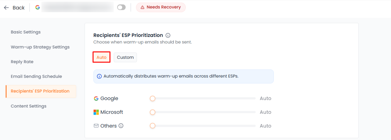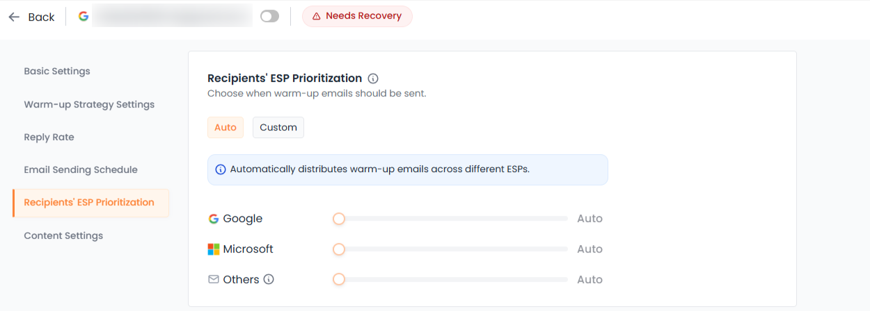 ESP-Specific Warm-up Targeting allows you to control how warm-up emails are distributed across different providers so you can build a reputation where it matters most.
