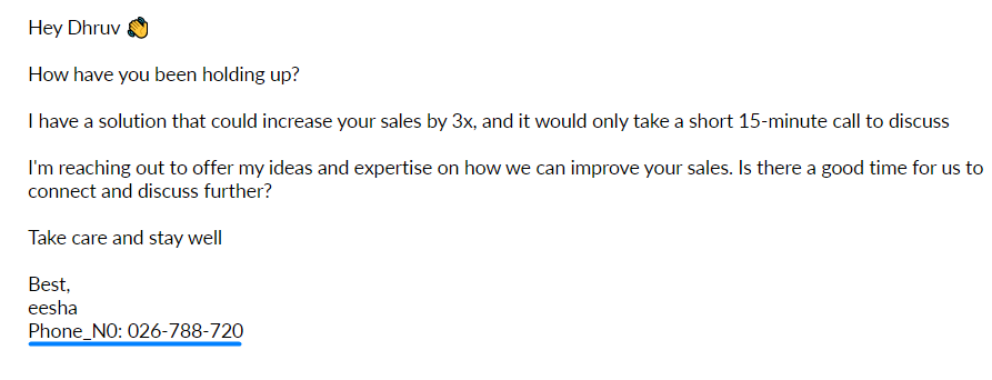 Warm-up emails that are sent from TrulyInbox will contain Phone_N0: #{{9-digit-number}} as per the below example: