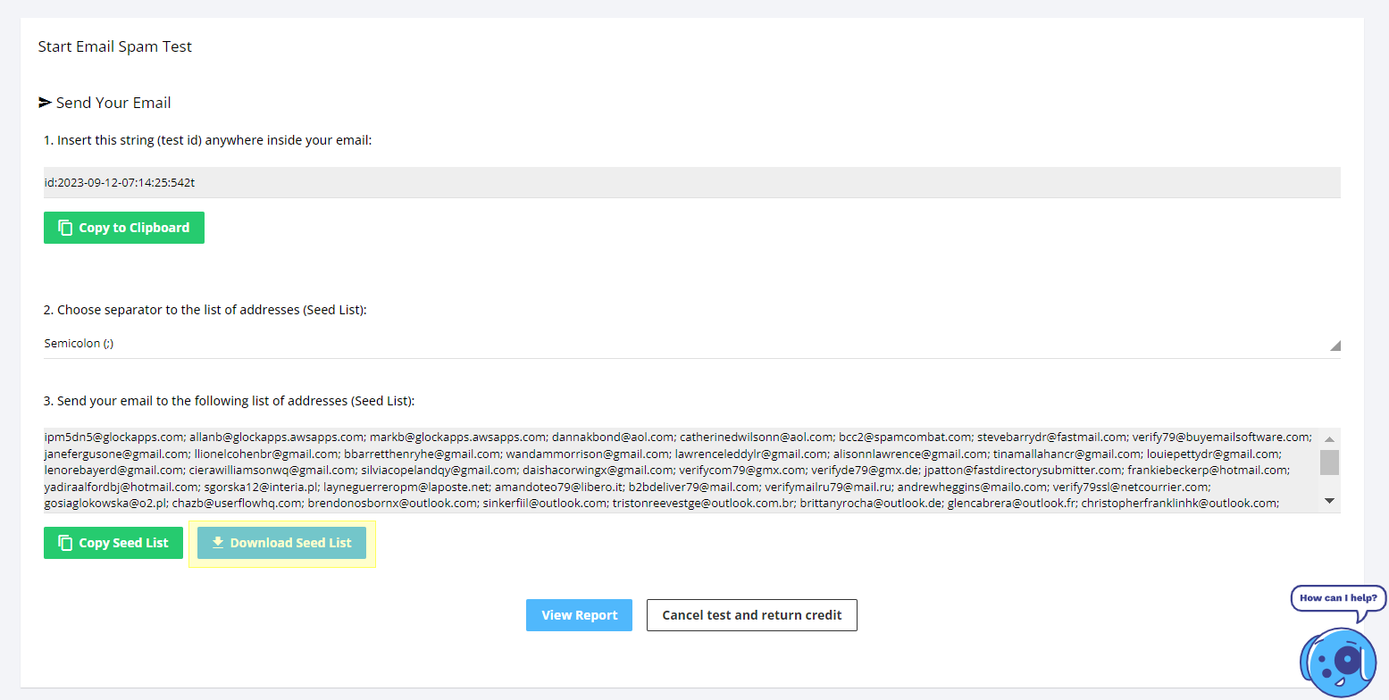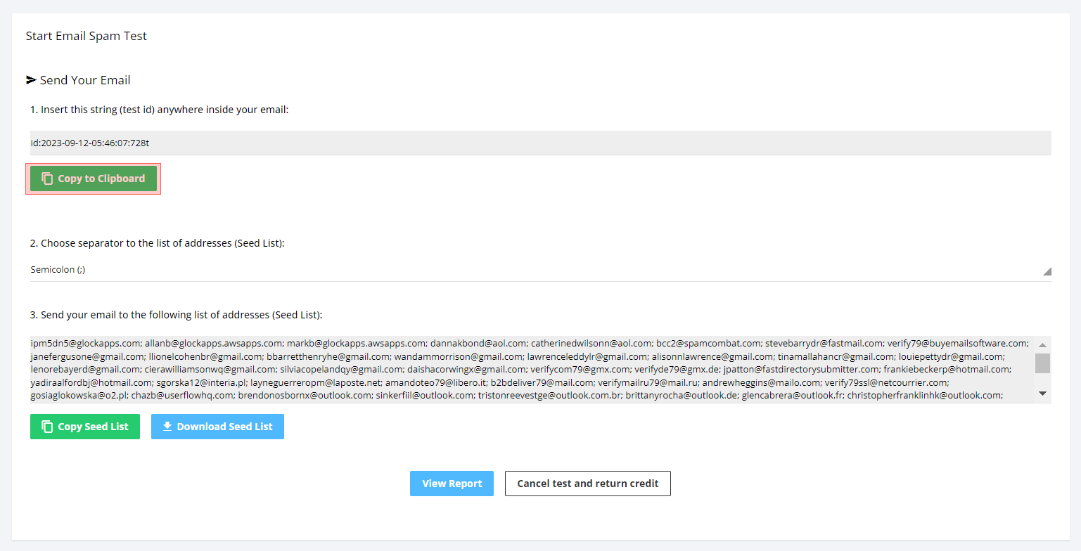 Now, you must send an email to the industry-leading Seed List (a group of real mailboxes allocated worldwide and managed by GlockApps).