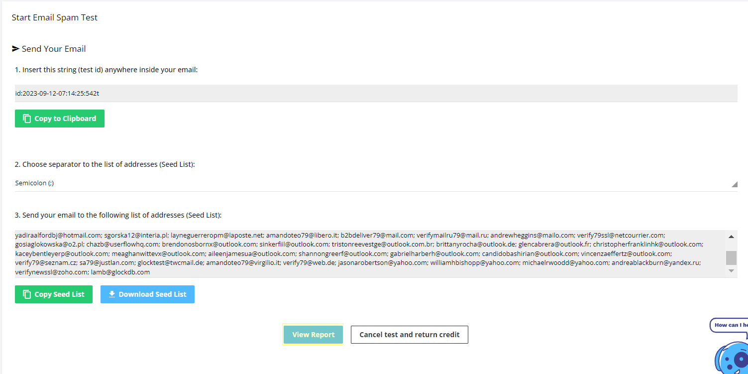 Get Seed List – This allows you to see the test ID string and seed list you used for your test. If your report has undelivered results, retry sending your email with the ID to our seed list. The missing results will be added to the report if the message is delivered.