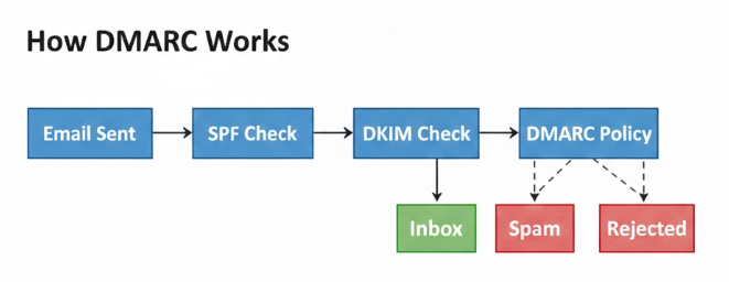 When an email is sent, the receiving server checks: