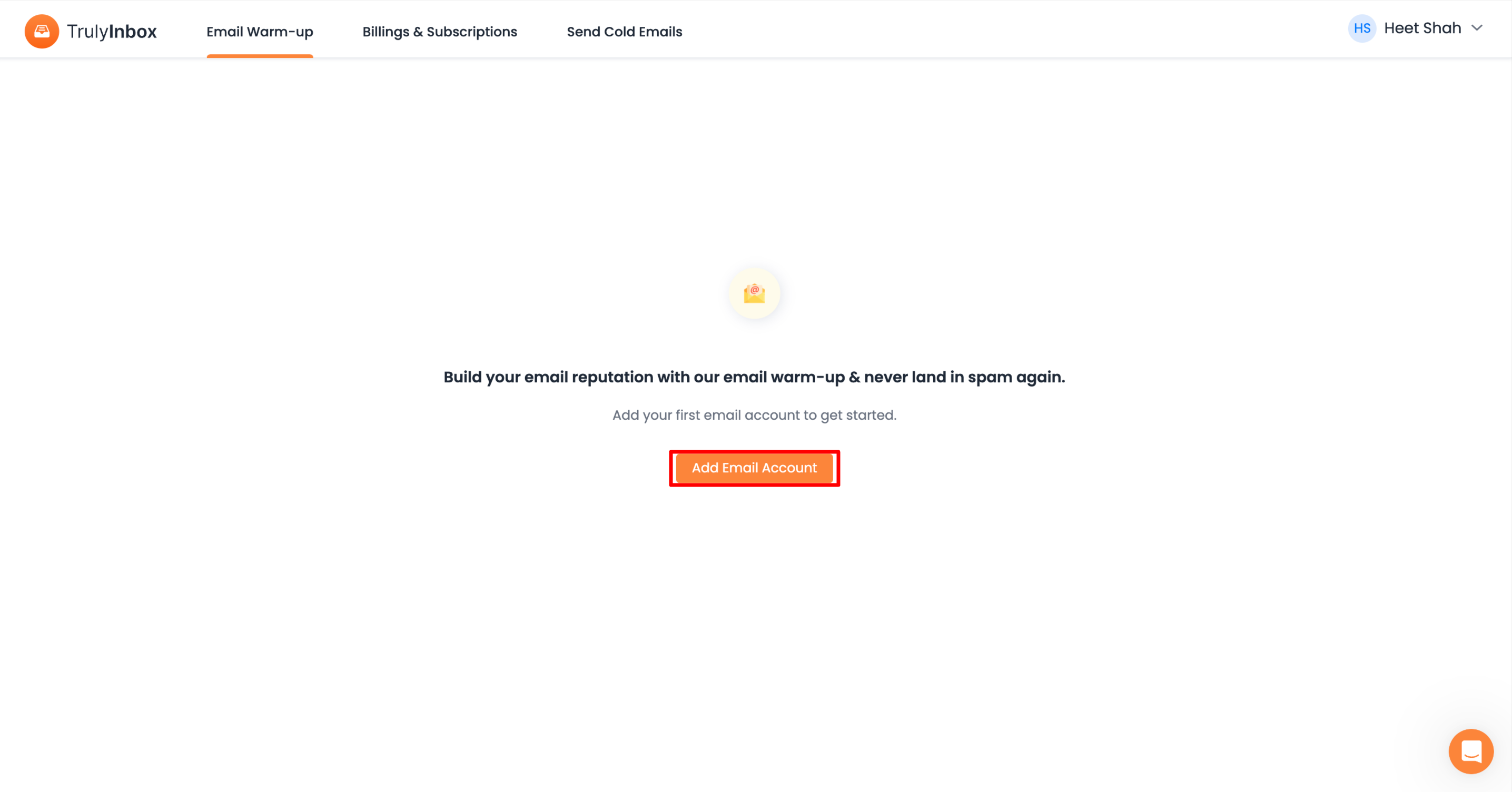 Once you're in Trulyinbox, look for the "Add Email Account" button and click.